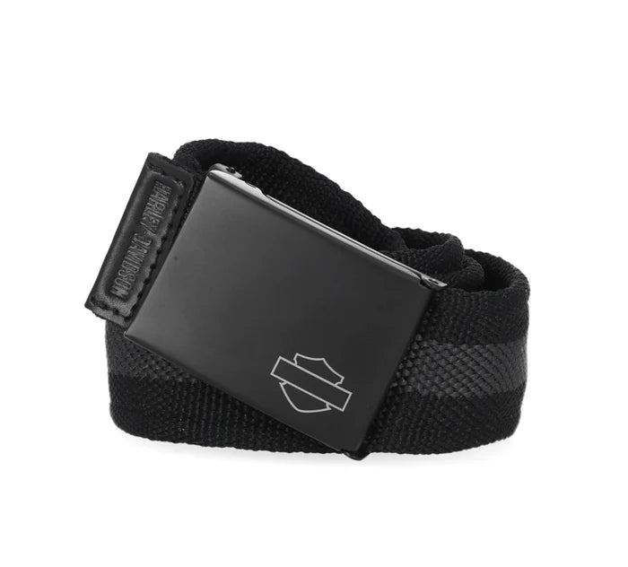 TIMELESS CLASSIC CASUAL NYLON WEB BELT. PERFECT TO WEAR FOR ANY CASUAL OCCASION. MATTE GUNMETAL FINISH. BOTTLE OPENER. 38MM WIDE.