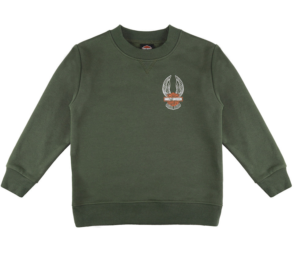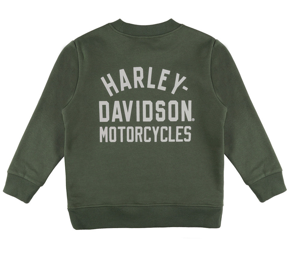 The Fleece Crew Neck Pullover Crew Neck features an H-D® Logo Printed Front & Back.