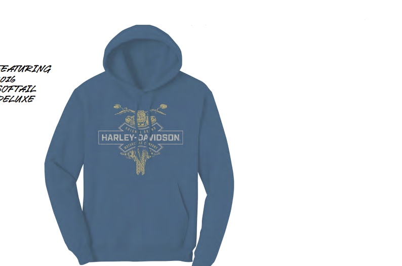 50/50 blend hoodie featuring a 2016 Softail Deluxe on ensign blue.