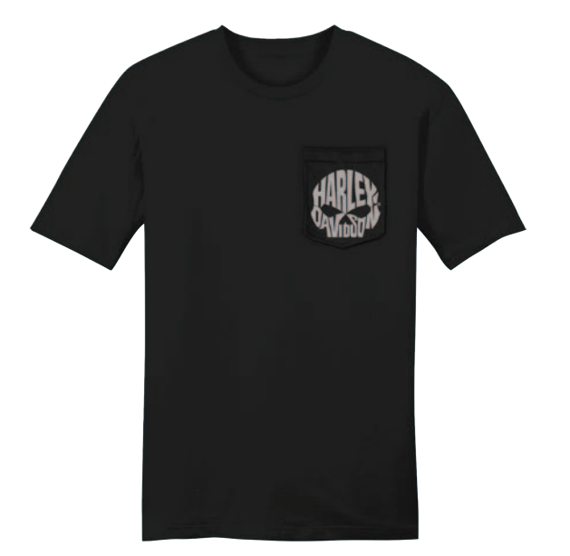 Keep it classic with this black, 100% ring spun cotton pocket tee featuring a subtle Harley-inspired graphic on the chest pocket. This shirt features a color-matched classic long logo bar and shield with Yellowstone Harley-Davidson on the back. Designed for everyday comfort and effortless style, this tee delivers a low-key look with just the right amount of attitude. The minimalist front pocket detail makes it perfect for riders and fans who prefer a clean, understated design that still represents the brand.