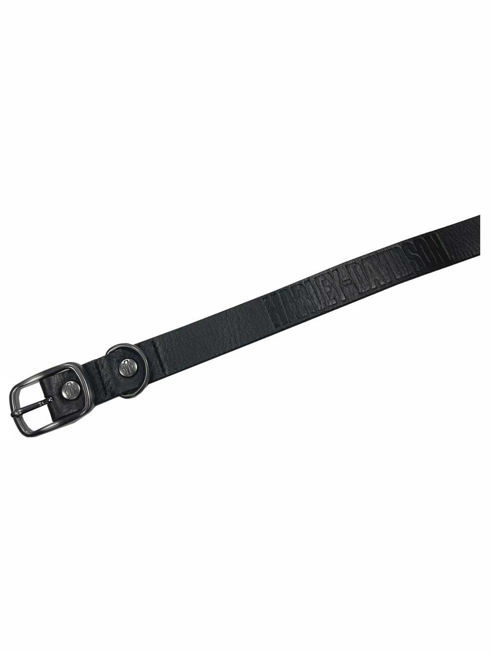 Constructed from durable genuine pebble grain leather. Embossed Harley-Davidson script. Adjustable. Center bar buckle. 25mm wide.