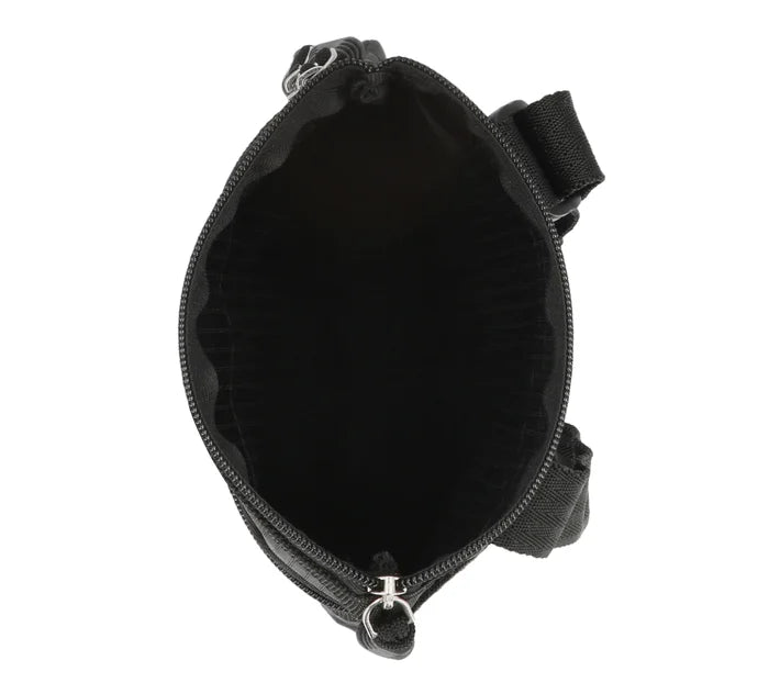 Be bold and care-free with this lightweight, Harley Davidson crossbody with ample storage space and a hands-free, convenient style! Top zipper entry. Two front zipper pockets for extra storage and quick access to necessities!