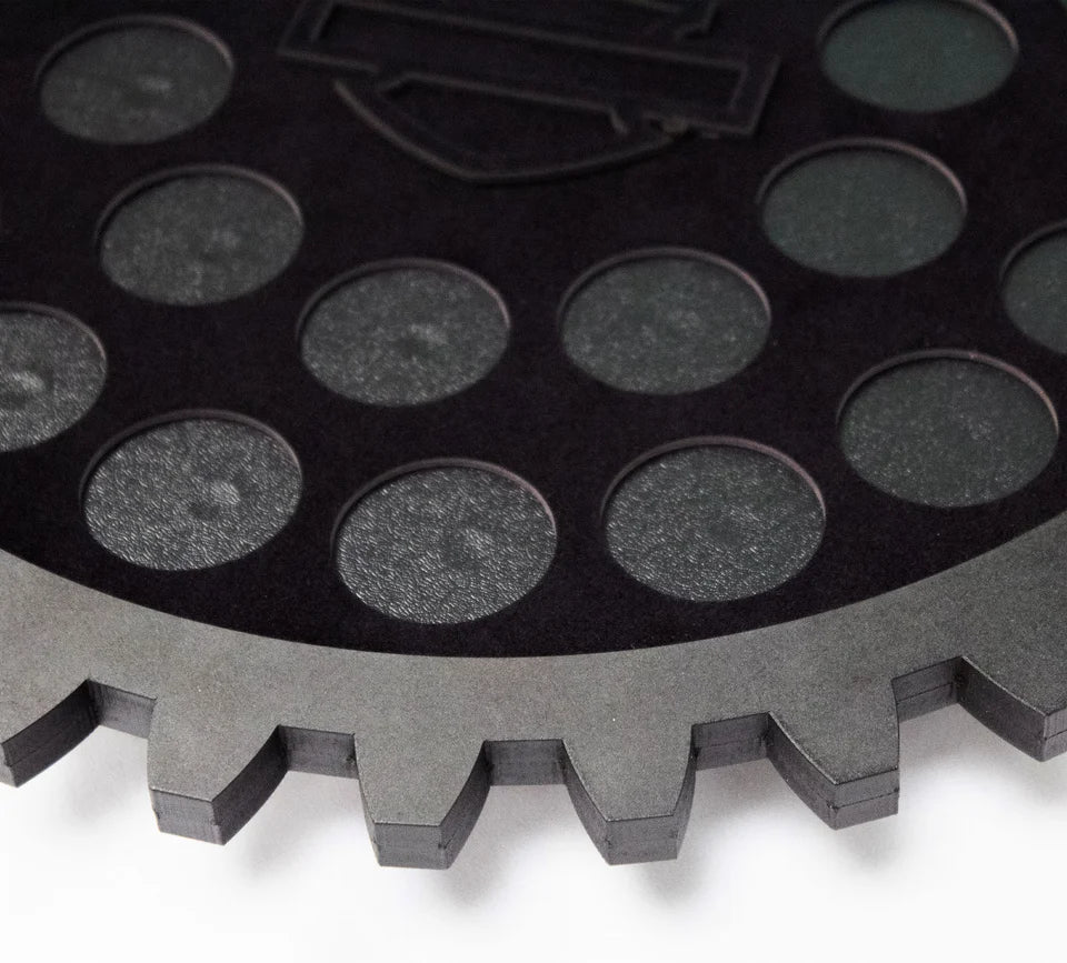 Show off your Harley-Davidson spirit with our bold, gear-shaped poker chip display. Built for collectors and enthusiasts, this magnetic frame is as functional as it is striking. Perfect for Harley-Davidson collectors, this frame keeps your poker chips on full display with style and authenticity.