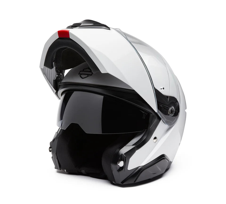 Wind tunnel-tested rear spoiler reduces drag. Lightweight, superior fit and comfort using advanced CAD technology. Includes breath deflector and chin curtain. Distortion-free visor and sun shield. Integrated, black dark smoke sun shield deploys quickly and easily with new wire operation system and easy-to-reach lever. RapidFire Shield Replacement System provides ultra-quick, toolless removal, and installation for efficient operation. Pin-prepared 3D face shield provides 99% UV protection. Includes pinlock insert.