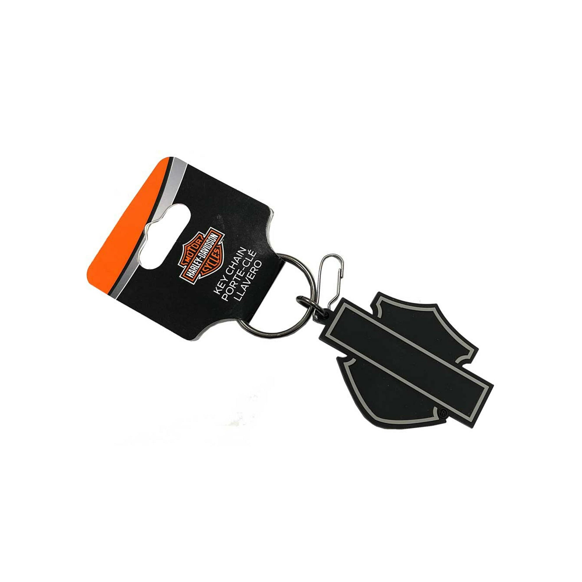 Harley-Davidson® PVC Keychain, 4521. High-quality flexible PVC silhouette Bar & Shield logo. Heavy-duty keyring and clip included Size: 4" x 2".