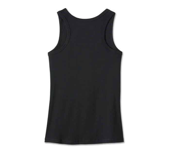 Stay cool and classic in our Bar & Shield Tank. Its textured look is made of 2x1 rib, ring-spun cotton with hit of spandex for added stretch (the heather grey also has a hit of polyester). Features bound neckline and armholes to boost durability. This women’s tank top is finished with our most iconic logo bold and beautiful on the front.